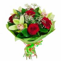 Невероятное сочетание из нежных орхидей бледно-розового цвета, символизирующих элегантность и совершенство, а также ярко-розовых и белых роз, создают букет невероятной красоты, а использование раскуса делают его еще более выразительным и насыщенным. С помощью такой одновременно яркой и трепетной цветочной композиции вы сможете выразить свои теплые чувства к любимой женщине, поздравить друзей, родственников или коллег с праздником, а также получить прощение от дорогого вам человека.