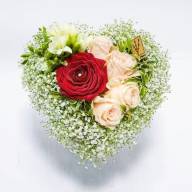 После ссоры с любимым человеком особенно важно забыть о глупых обидах и позаботиться о примирении. Специальная цветочная композиция для милых дам с кремовыми розами в основе лучше всего подойдет для такого случая. Упругие полураспустившиеся бутоны нежного пастельного оттенка очаруют избранницу своим роскошным внешним видом и волнительным ароматом. Идеальным дополнением такой комбинации станет пышная красная роза, олицетворяющая страсть и любовь, а также нежное обрамление в виде белоснежных гипсофил. Оригинальная форма сердца не оставит вашу девушку равнодушной.